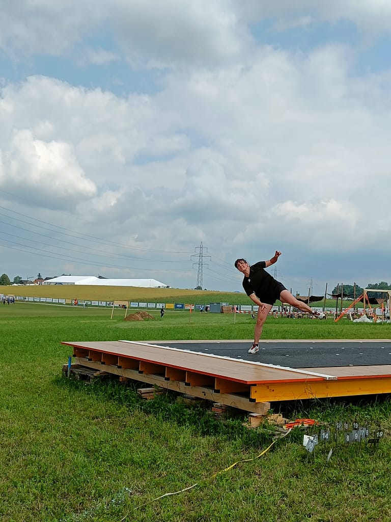 Als Nächstes stand das Kugelstoßen auf dem Programm, bei dem wir mit der Note 8.17 eine solide Leistung erzielten. Die Leistungen von den zwei Disziplinen motivierten uns, auch in den folgenden Disziplinen Vollgas zu geben.