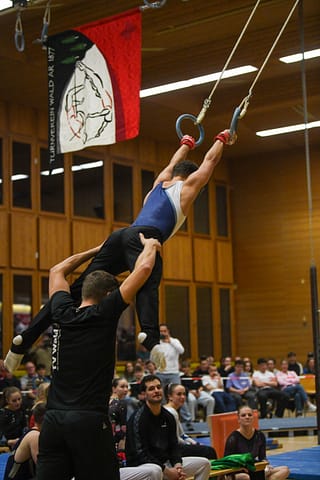 Gegen 19 Uhr folgte mit dem Drü Tanne Cup ein weiterer Höhepunkt des Tages. Beim Gerätewettkampf traten 24 der besten Turnerinnen und Turner aus der ganzen Schweiz paarweise gegeneinander an. Das Publikum durfte spektakuläre und hochklassige Übungen an den verschiedenen Geräten bestaunen. Der Wettkampf steigerte sich von Runde zu Runde und endete gegen 21 Uhr mit einem mitreissenden Finale.